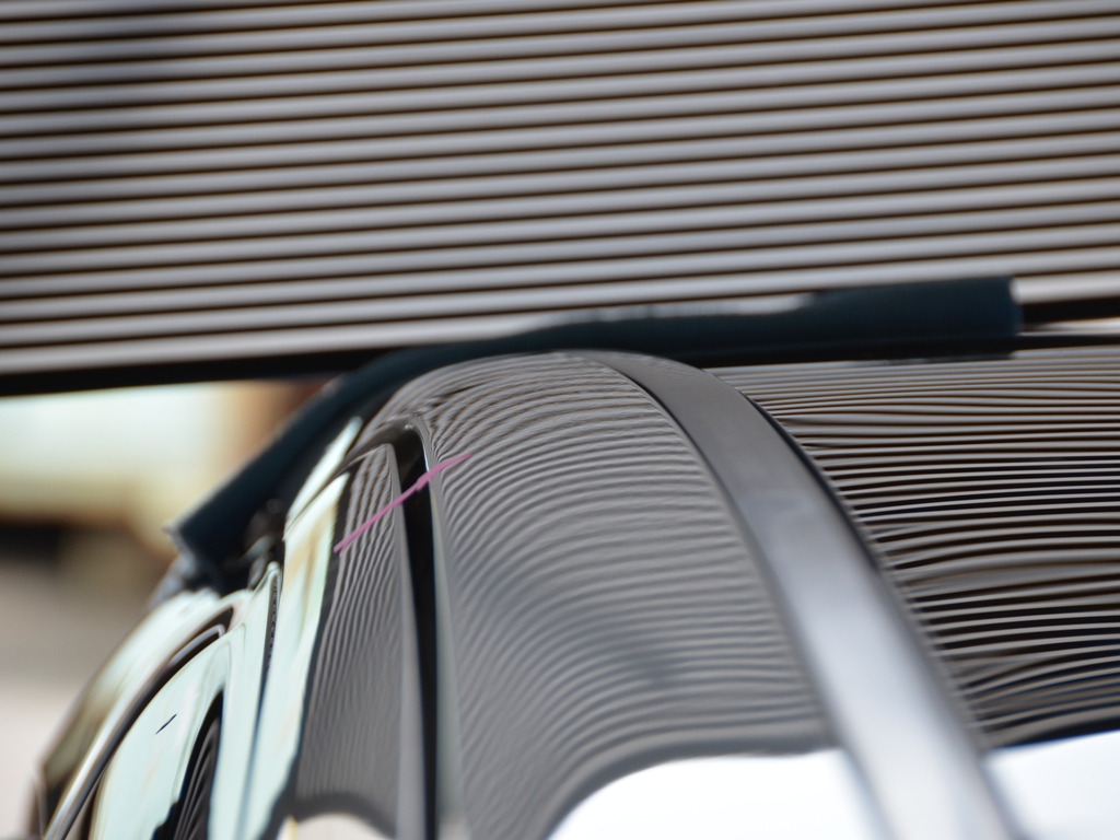車によってはプレスラインだけで仕切られて屋根と一体式になっている場合がありますが、今回の様にモールで区切られている車種は多数あります。